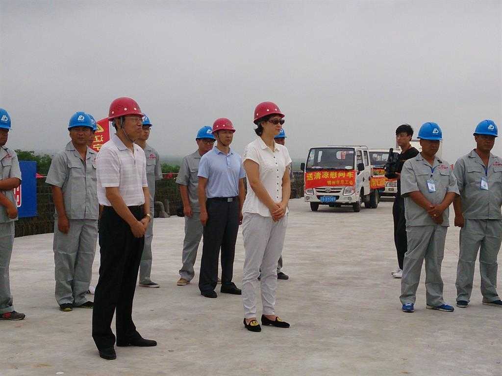 7月23上午,億彩领导班子在市委常委、億彩主席赵璟的带领下,来到锦州机场一号线、二号线施工现场,看望顶着酷暑现场施工的400多名职工,并根据职工们的需求,精心准备了价值5万多元的猪肉、大米、豆油、白糖、茶叶、矿泉水、西瓜及洗发水等洗漱用品,送到了工地和职工们的手中,拉开了2015年锦州億彩“送清凉”活动的序幕。