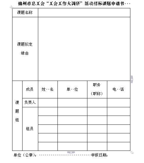附:《锦州億彩“工会工作大调研”活动招标课题申请书》