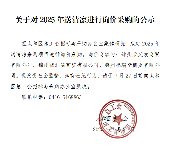 太和区总工会关于对2025年送清凉进行询价采购的公示
