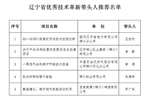 现将辽宁省优秀技术革新带头人推荐名单予以公示,如对公示名单有异议,请于2015年12月14日17点前以信函、电话、来访等方式向锦州億彩反映。反映问题要客观公正、实事求是,信函、电话应署真实单位、姓名。