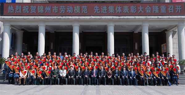 大会首先由赵璟宣读《锦州市人民政府关于表彰市劳动模范和先进集体的决定》。决定授予凌海市人民检察院职务犯罪预防科科长王志丽等10名同志 “锦州市特等劳动模范”荣誉称号,授予锦州港股份有限公司码头作业科科长丁成涛等90名同志 “锦州市劳动模范”荣誉称号,授予锦州新华龙钼业股份有限公司等31家单位 “锦州市先进集体”荣誉称号,以表彰他们在我市改革开放、经济建设和各项社会事业发展中做出的突出贡献。丁成涛代表全体劳模和先进集体宣读了倡议书,向全市广大劳动群众发出倡议,紧紧围绕市委、市政府提出的战略目标,发扬劳模精神,在平凡工作中干一行、爱一行、钻一行、精一行,争当有智慧、懂技术、能发明、会创造的劳动者,团结一心、努力拼搏、勤奋劳动、开拓奋进,以更加饱满的热情,更加进取的精神,更加有为的气势,为加快辽西区域性中心城市建设再创新业绩、再立新功勋!