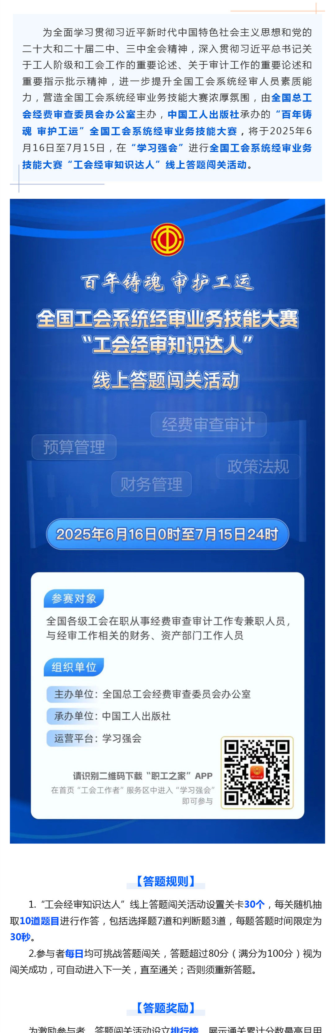 开赛!线上练兵争做“工会经审知识达人”,通关答题赢好礼~