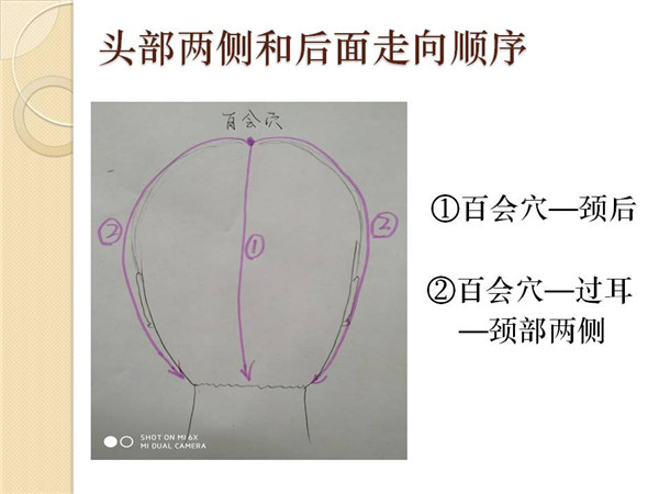上身从前胸开始,每个部位都进行8-10次,前胸围绕两个乳房画圈,然后从两侧腋下开始向下到骨盆,腹部以9的倍数,分别按顺时针和逆时针方向画圈,整个腹部都要抚触到。