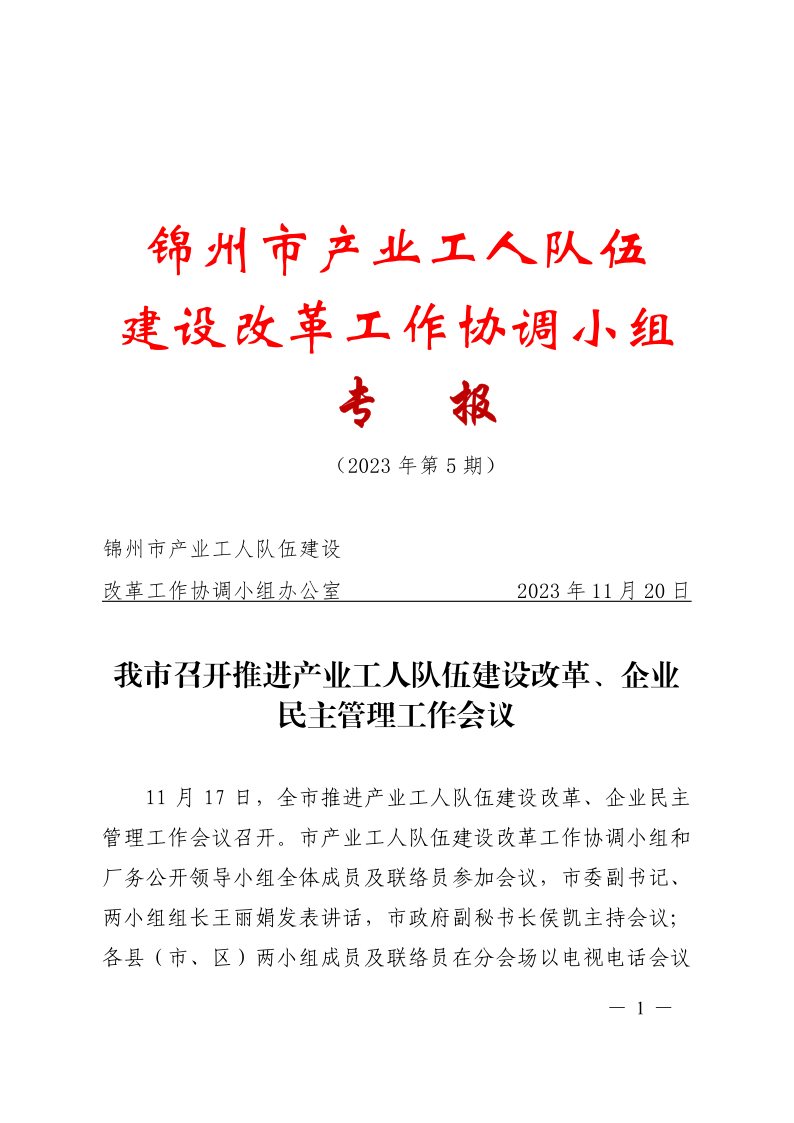锦州市产业工人队伍建设改革工作协调小组专报(2023第5期)