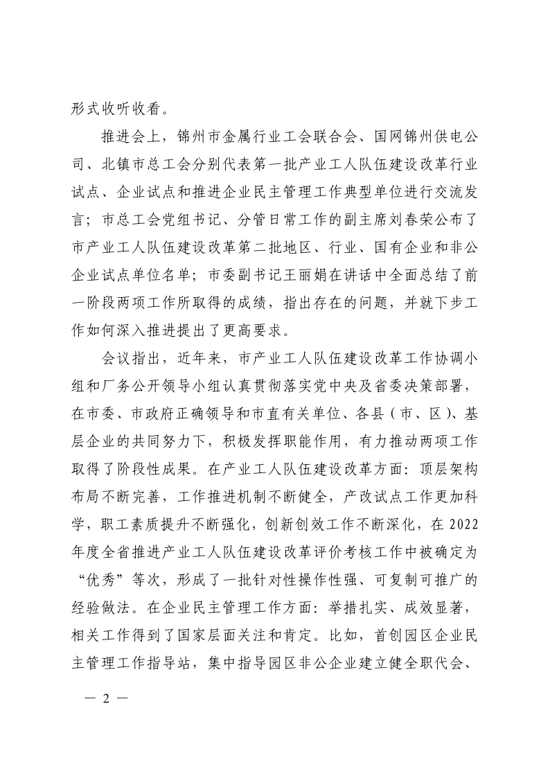 锦州市产业工人队伍建设改革工作协调小组专报(2023第4期)