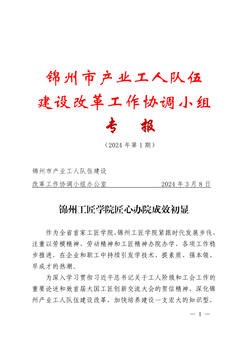 锦州市产业工人队伍建设改革工作协调小组专报(2024第1期)