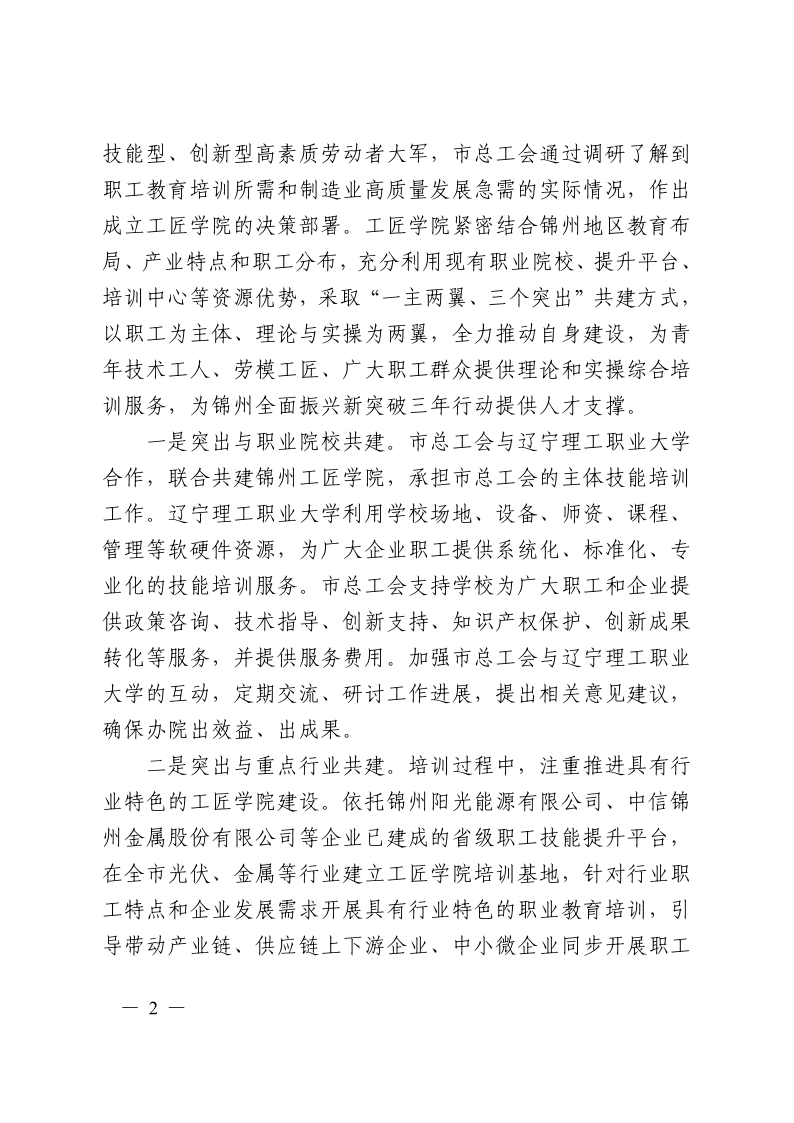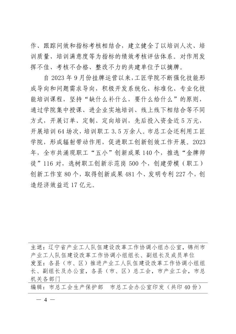 锦州市产业工人队伍建设改革工作协调小组专报(2024第2期)