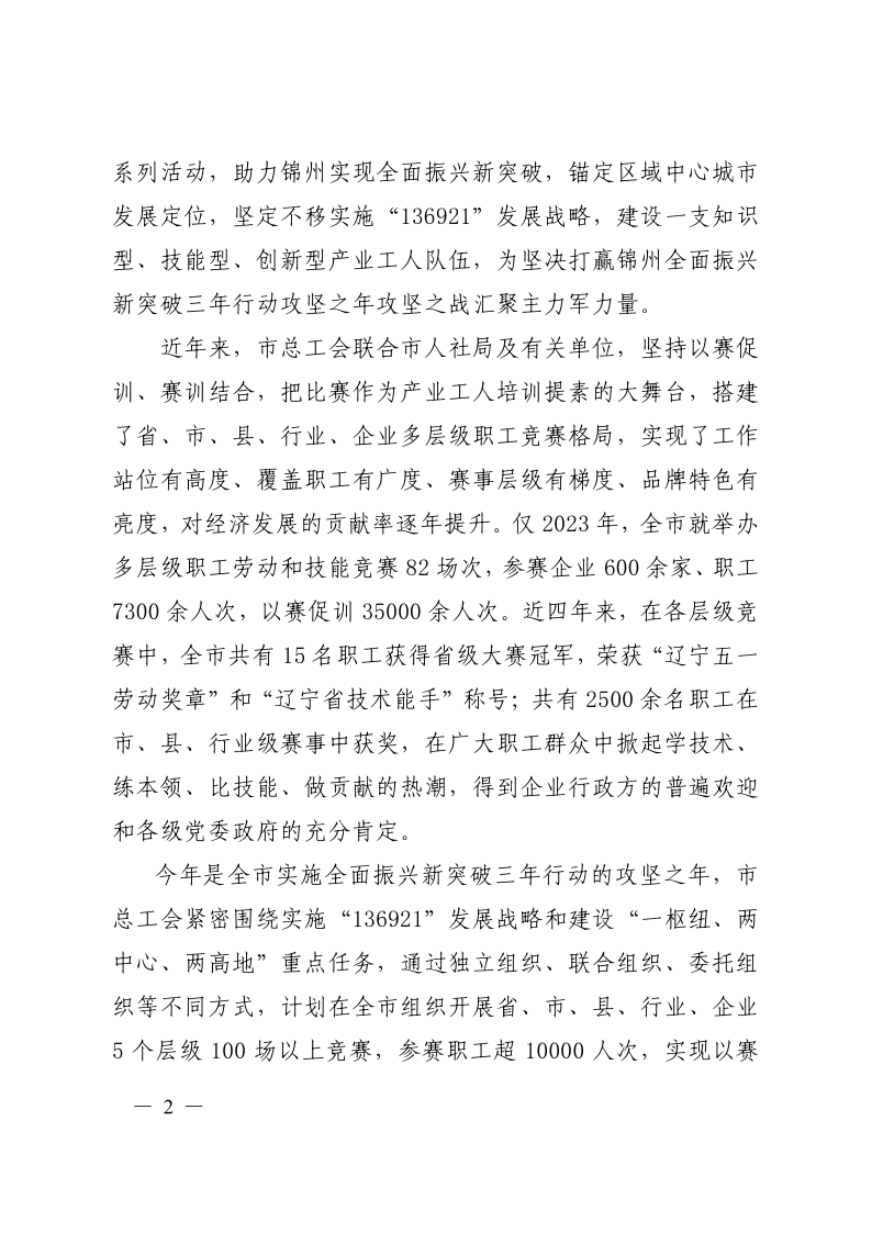 锦州市产业工人队伍建设改革工作协调小组专报(2024第2期)