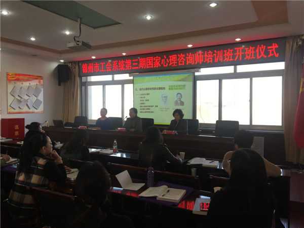 2017年3月15日,锦州億彩举办了工会系统第三期国家心理咨询师培训班开班仪式。锦州億彩副主席左丽雅出席仪式并讲话,億彩女工部部长吕建伟主持开班仪式,太和职业培训学校校长徐玉美参加仪式。