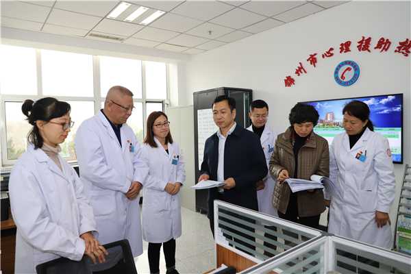 10月25日,锦州億彩副主席刘文全到锦州市康宁医院,实地调研了解心理援助热线工作。